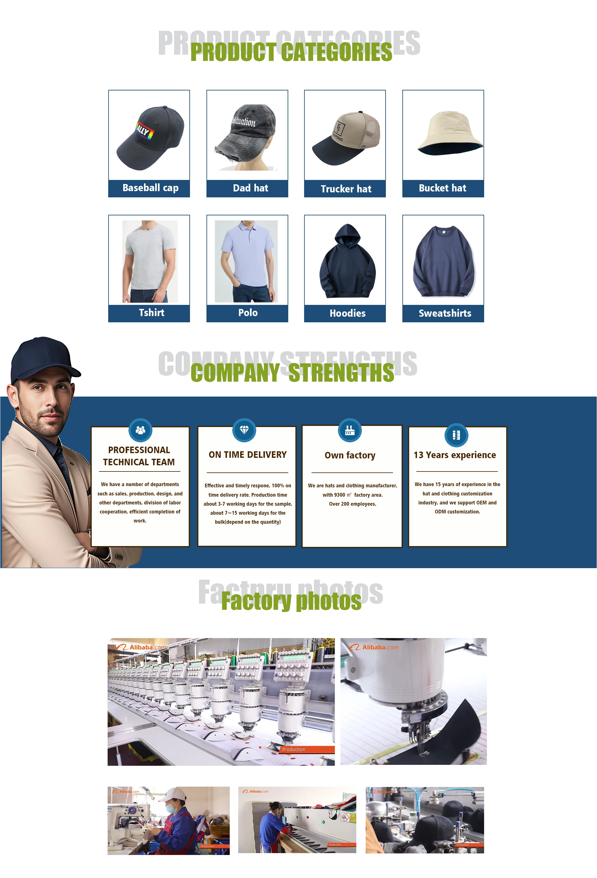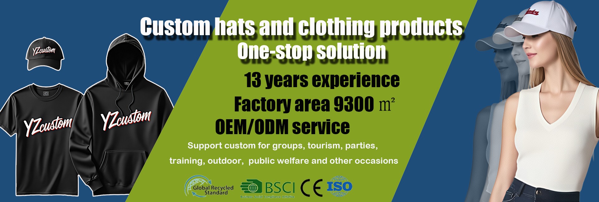 Welcome to Fuzhou Youzhi apparel Co., Ltd. a leading manufacturer specializing in custom products for teams, organizations, and brands for 13 years. We provide high-quality, tailor-made headwear, apparel, and gift items, offering a wide range of options including baseball caps, bucket hats, trucker hats, knitted hats, sweatshirts, t-shirts, jerseys, scarves, bandanas, and more.
